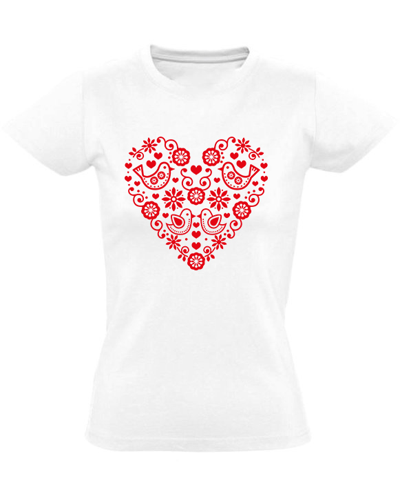 Dámské tričko lidový motiv srdíčko – červené