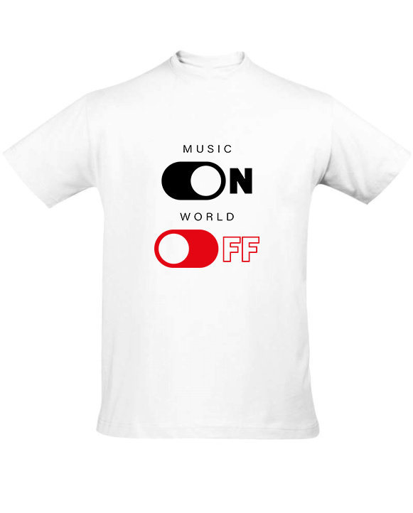 Prémiové bavlněné tričko. Materiál: 190g/m². S potiskem na přední straně – motiv Music on world off.